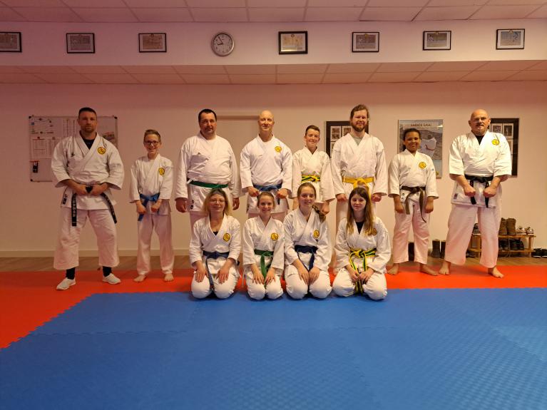 Geprüft wurde in 2 Gruppen. Erst die Kids und im Anschluss die Erwachsenen. Geprüft wurden Kihon Techniken, Partner Übungen und Kata.