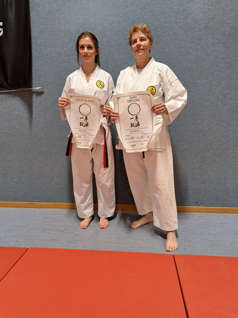Mia Tremper erhielt mit 14 Jahren den Junior Dan, Petra Hofmann den 2. Dan. Vielen Dank an alle Helfer die mitgefahren sind und als Partner bei der Prüfung zur Verfügung standen.