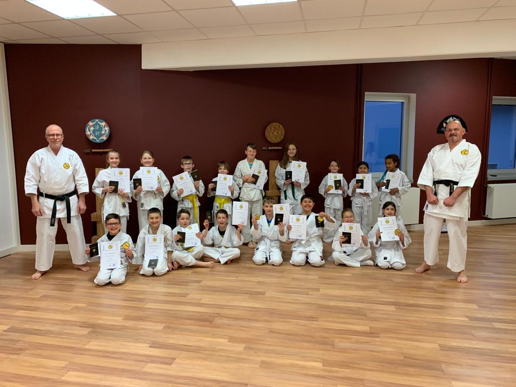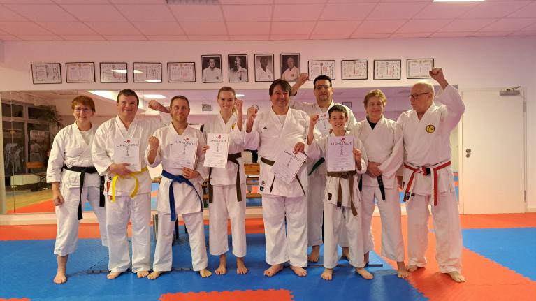 Sowohl die Kinder als auch die Erwachsenen waren gut vorbereitet und gaben hochkonzentriert ihr Bestes. Und so war die Freude und Erleichterung groß, als Sensei Jürgen Fischer die Ergebnisse verkündete. Fast alle hatten die Prüfung bestanden und durften mit viel Lob, wohlwollenden Hinweisen, neuen DKV-Urkunden und einem neuen Gürtel stolz und glücklich den Heimweg antreten.