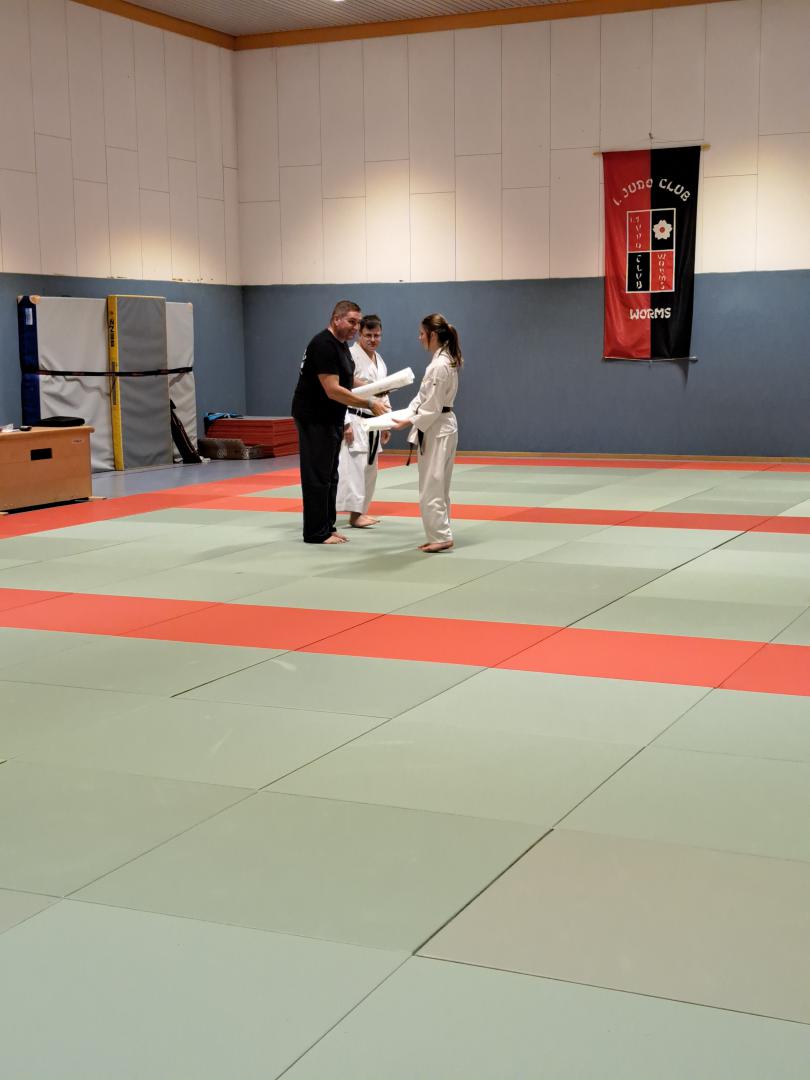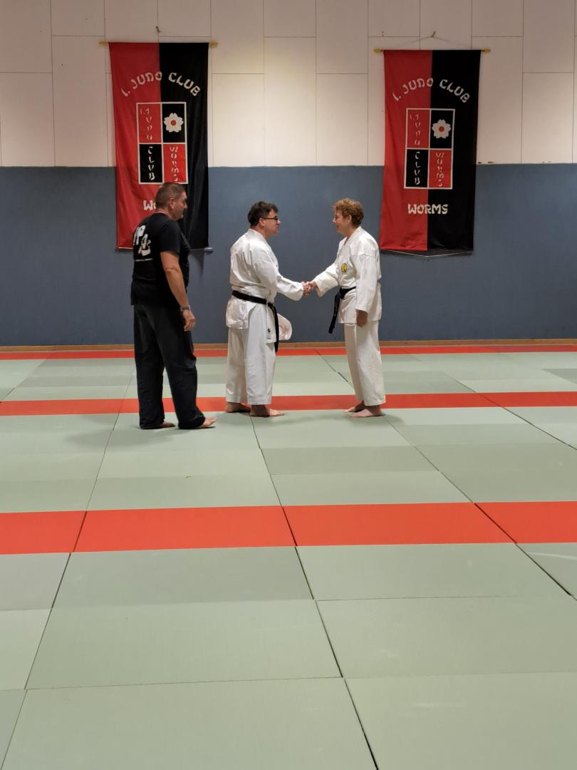 Stella Lynn Sauke und Wolfram Christ bestehen die Prüfung zum 1. Dan.