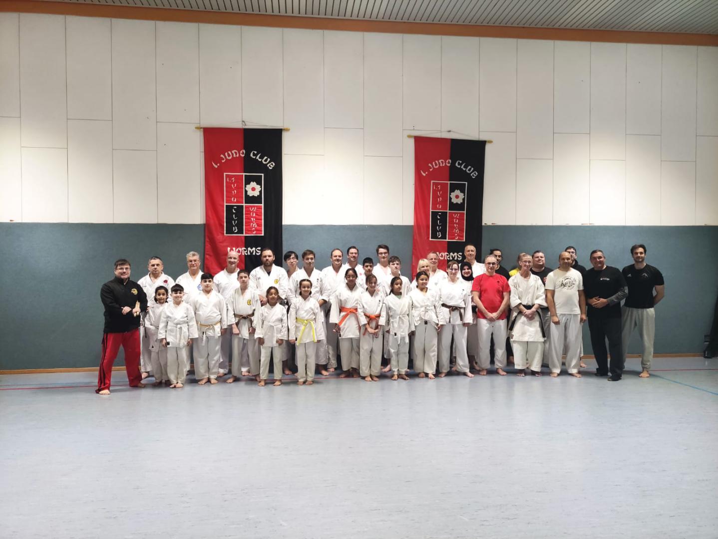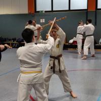 Am Samstag den 21. Dezember fanden die Dan Prüfungen des DKV in Worms statt. Vor den Prüfungen konnte man an einem Lehrgang teilnehmen. Der Lehrgang unter der Leitung von Marcus Gutzmer und Christoph Offen beschäftigte sich mit Karate Techniken gegen Stockangriff. Gleichzeitig wurde eine neue Kata vermittelt. Eine Sanchin Kata mit offenen Händen, die wir gerne in unser Programm aufnehmen werden.